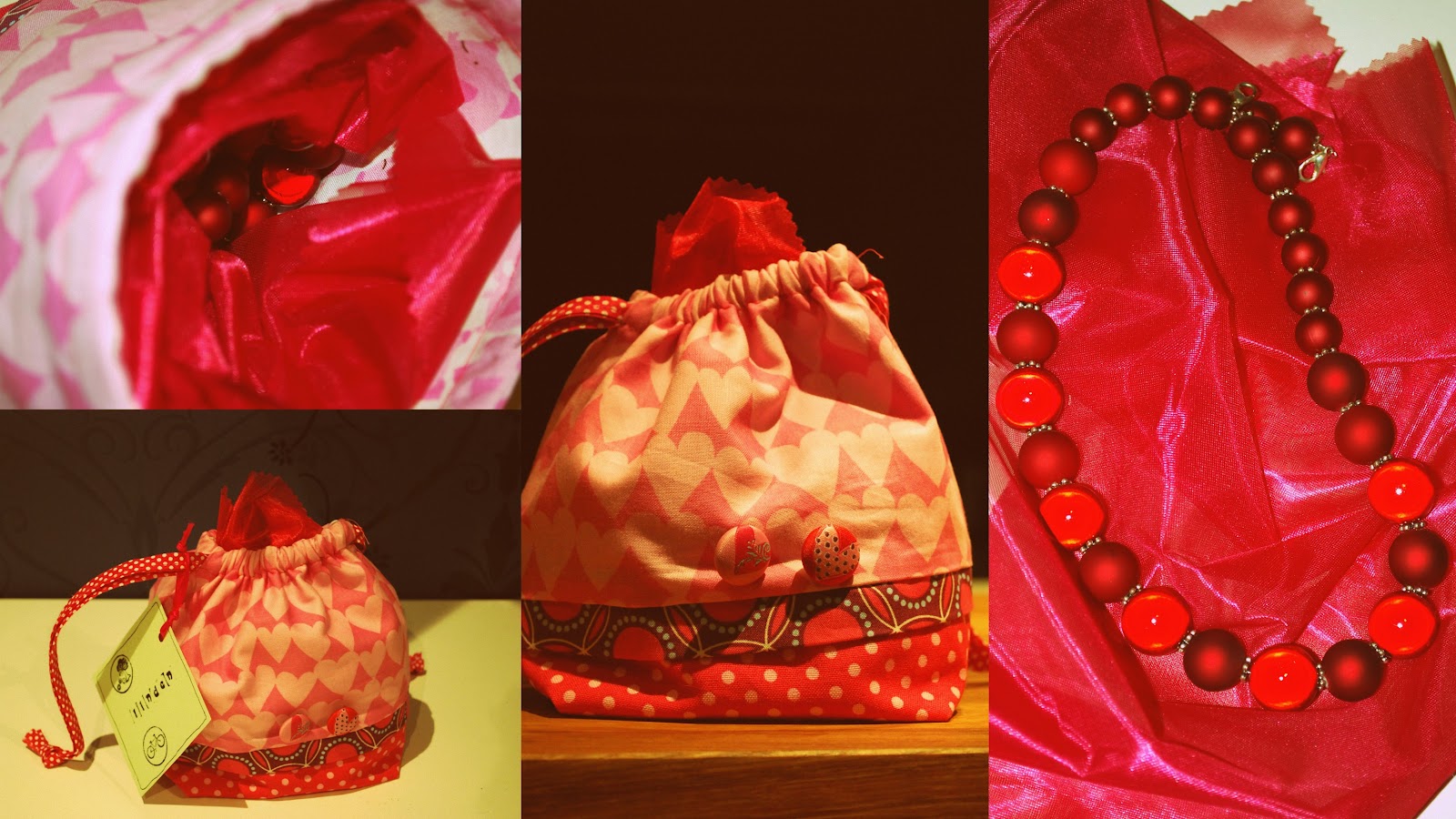 Het werd een donkerrode zelfgemaakte halsketting in een knikkerzakje van eloleo (dat dus ook als leuke verpakking kan dienen, laat het bij deze een tip zijn).